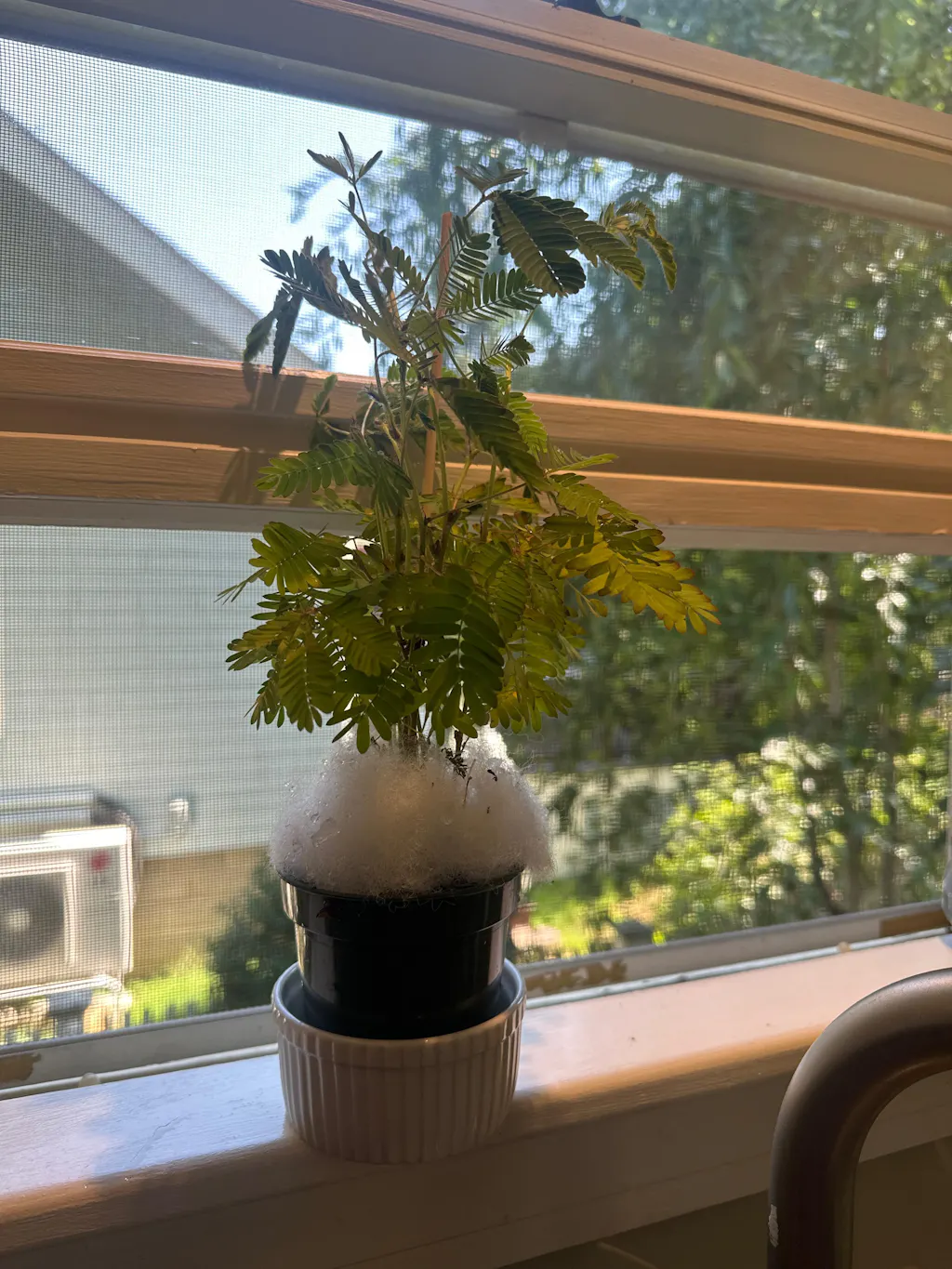 Mimosa pudica prefers a humid environment, similar to its native tropical habitat. Aim to maintain humidity levels between 40% and 60%. If the air is too dry, the plant's leaves may turn brown at the edges. You can increase humidity by misting the plant regularly, placing it on a humidity tray, or using a room humidifier.